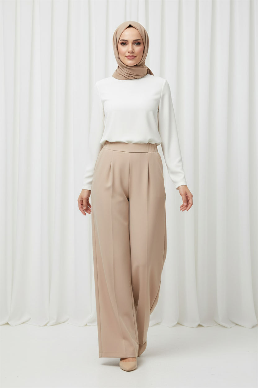 Colmar Beli Lastikli Geniş Paça Pantolon Vizon