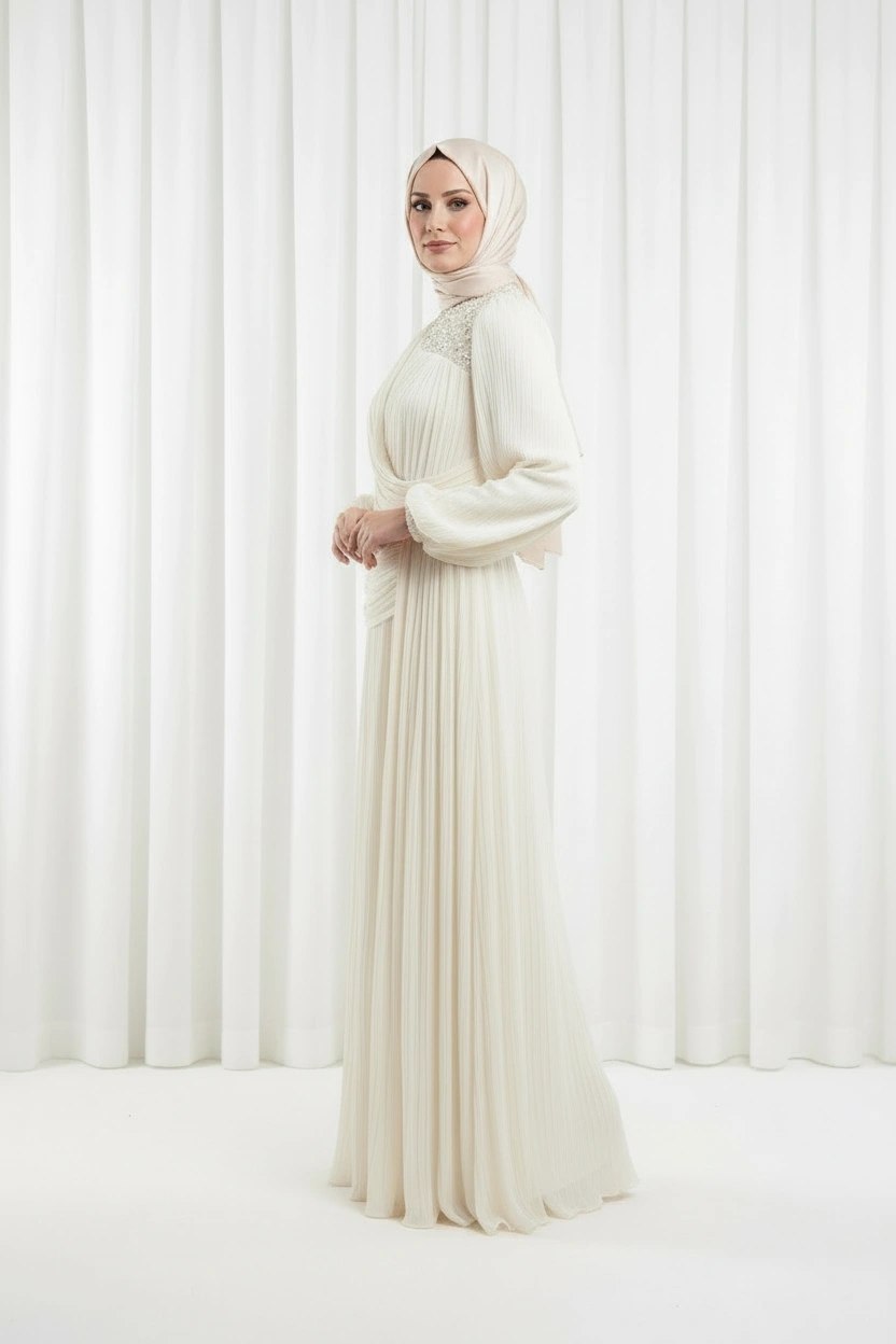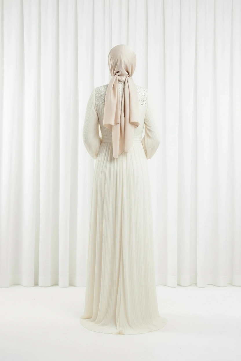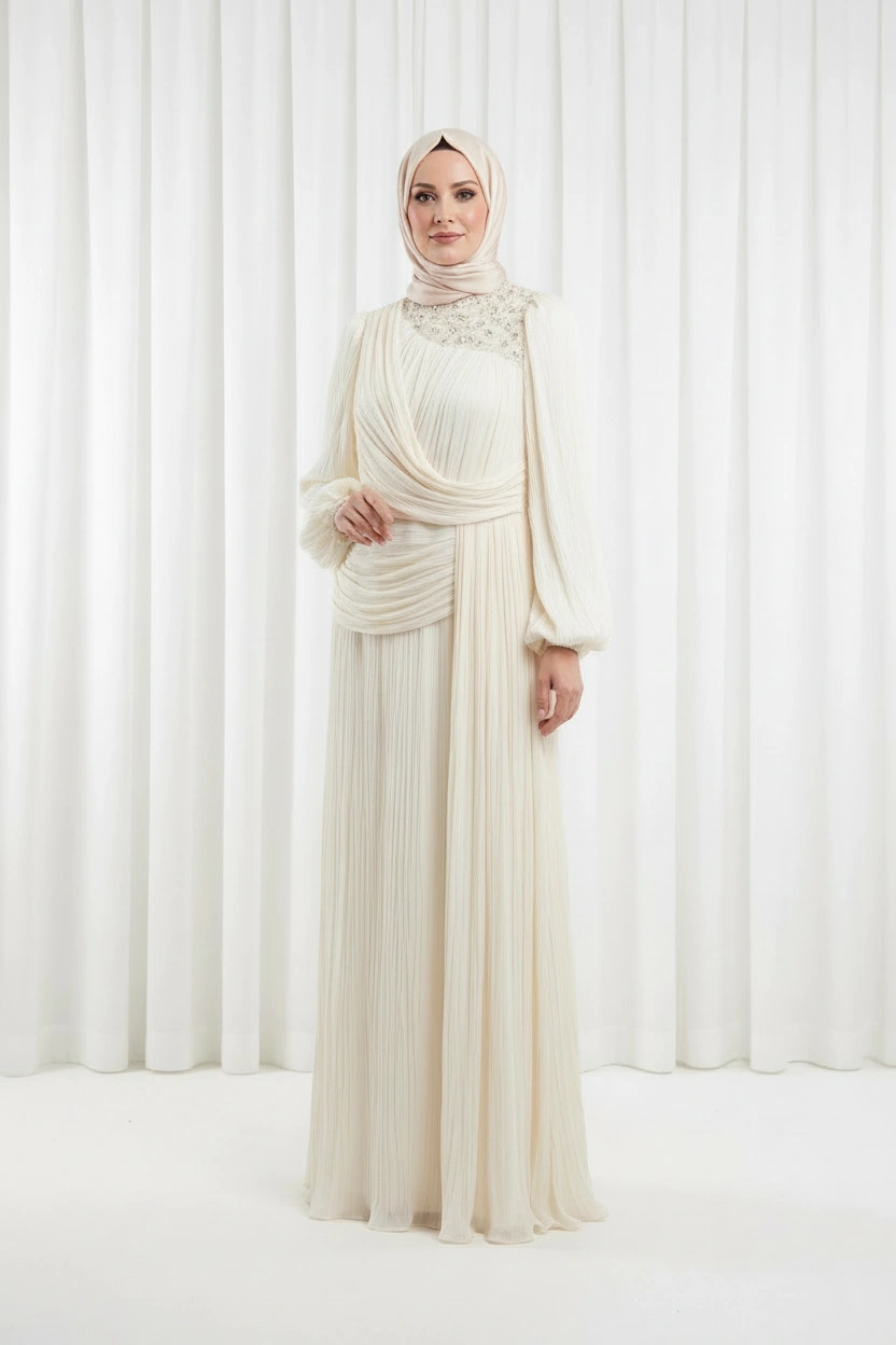 Ekru abiye elbise, özel günlerde şıklığıyla fark yaratmak isteyen kadınlar için tasarlandı. Minimal duruşu ve asil rengiyle her ortamda göz alıcı bir görünüm sunar.