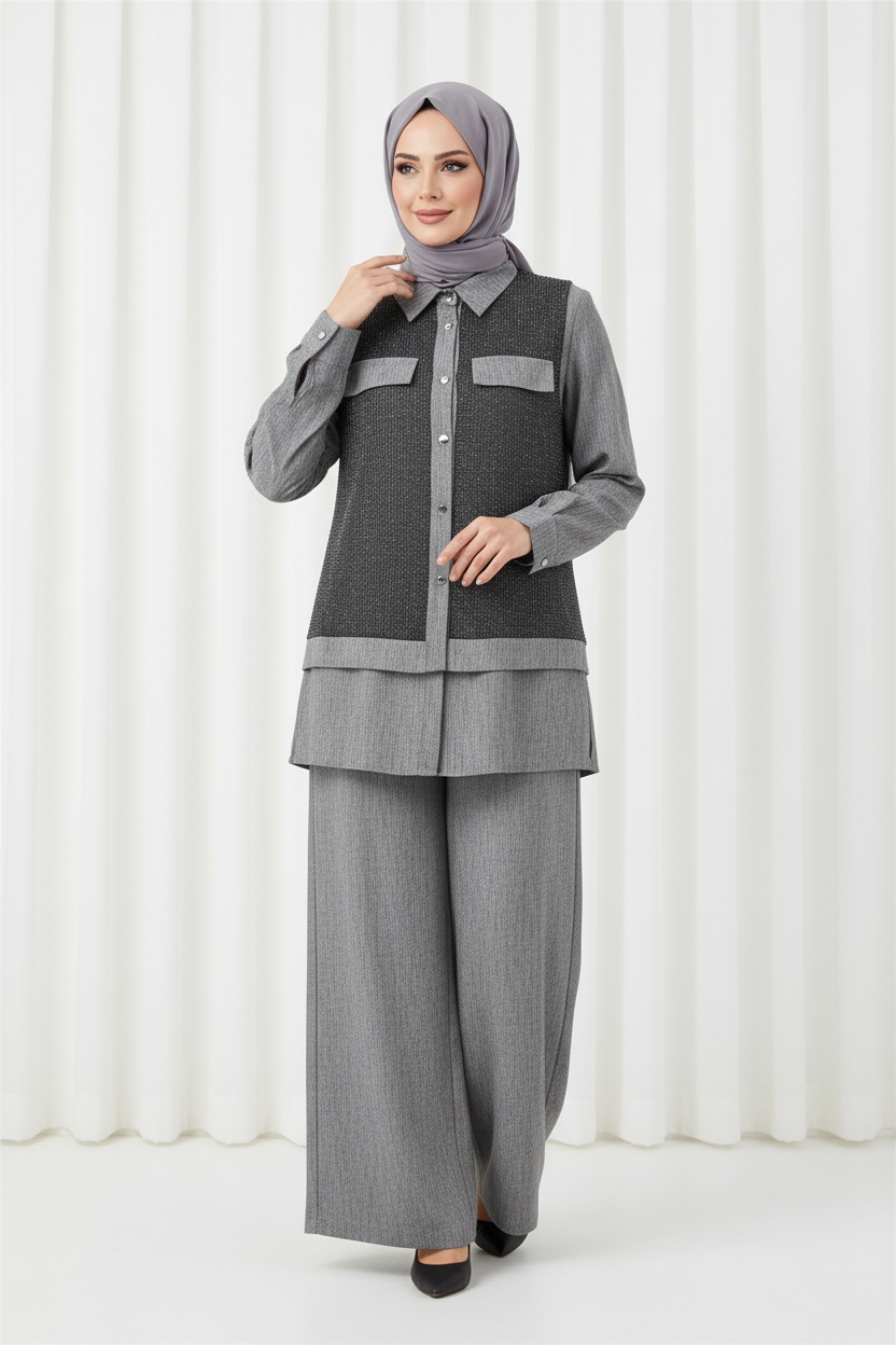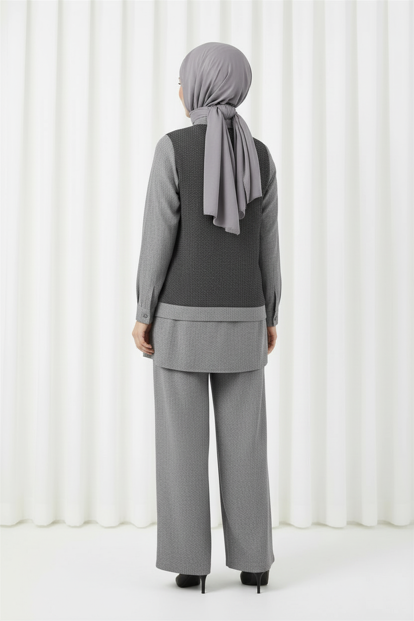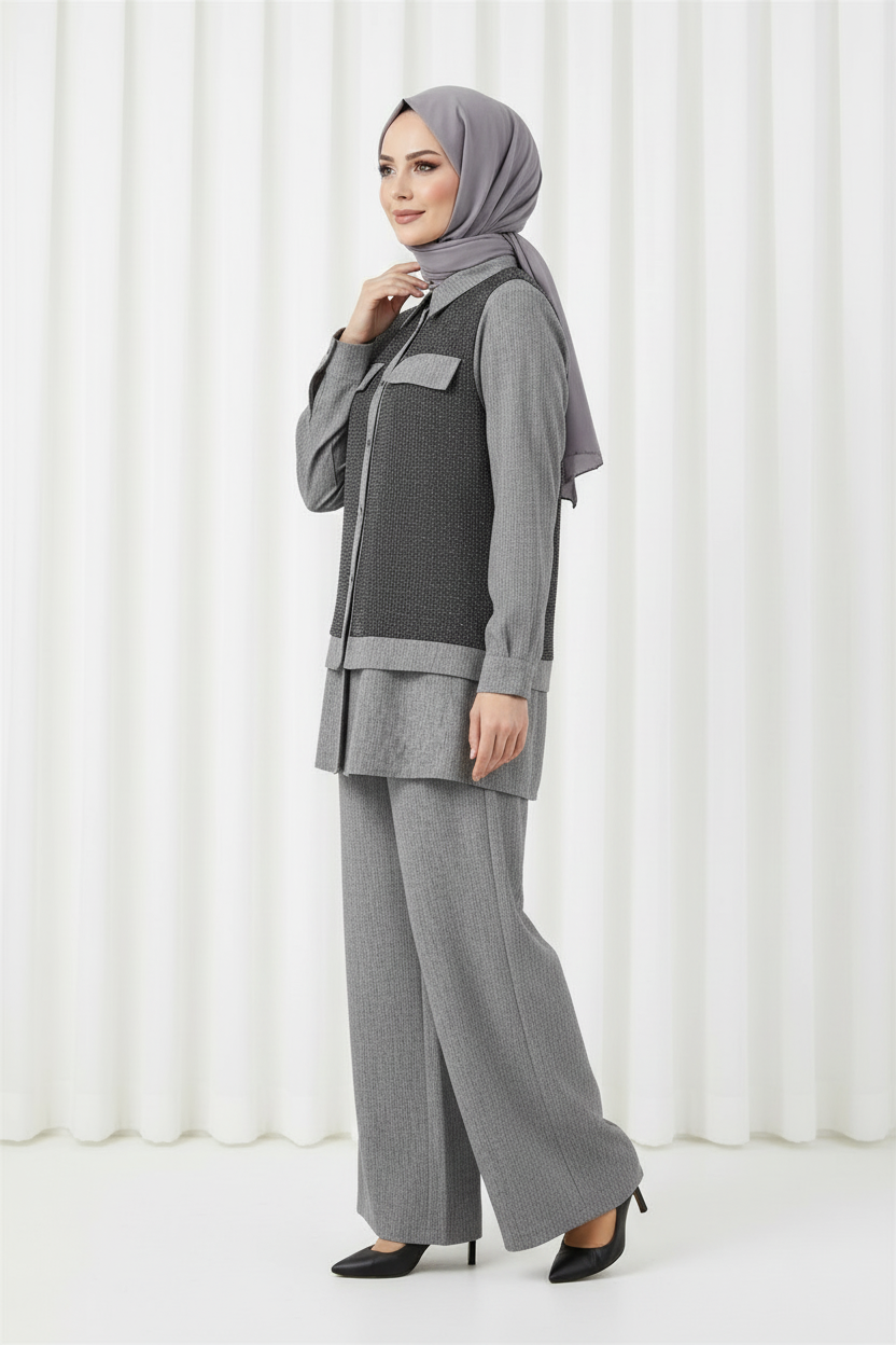File Ceketli Pantolon Etekli Takım, şık file ceket detayı ve uyumlu parçalarıyla modern ve zarif bir görünüm sunar. Pantolon ve etek alternatifi sayesinde farklı kombinler oluşturabilir, hem günlük hem de özel günlerde şıklığınızı ön plana çıkarabilirsiniz. Rahat kesimiyle gün boyu konfor sağlar.